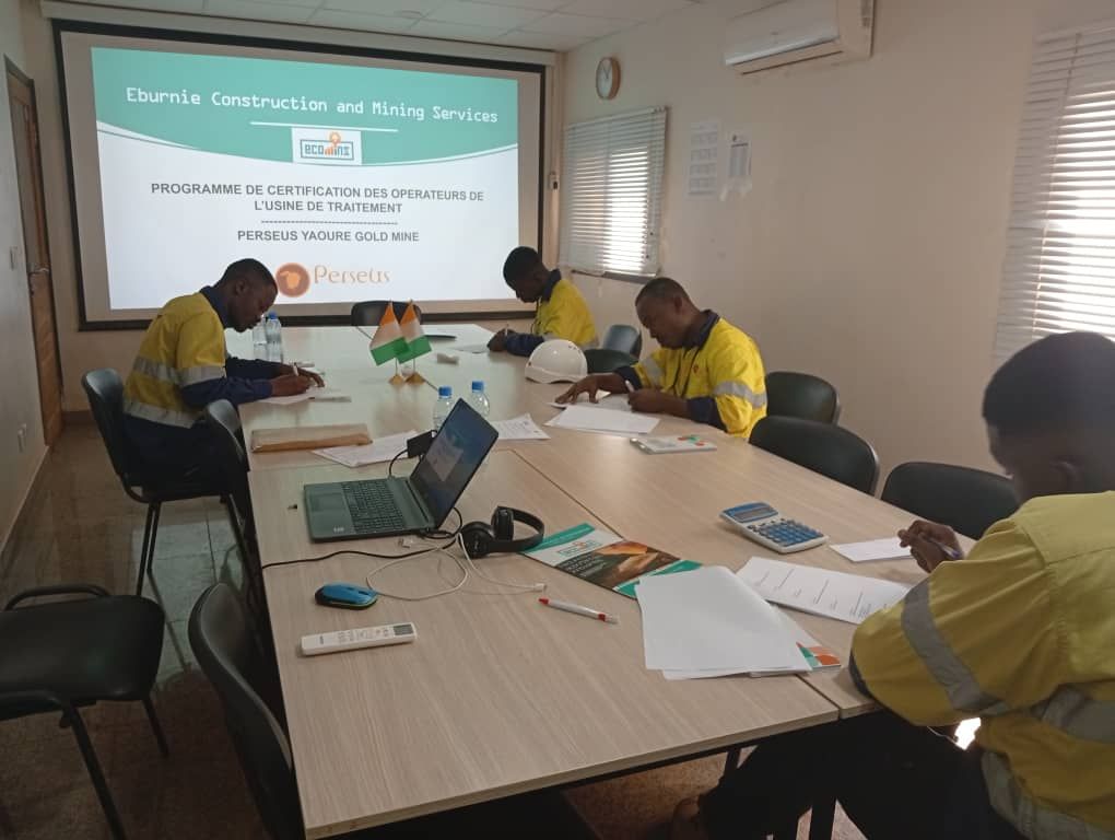 Cette semaine, nous avons démarré le programme de formation certification sur le site de Perseus Mining Yaouré pour les opérateurs de l'usine de traitement. Ce programme comprend à la fois des cours théoriques, des sorties sur le terrain et des formations pratiques et implique 32 opérateurs.